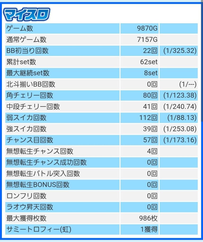 結果を見てこんなんでも設定6の場合があるというのを参考にしていただけると幸いです