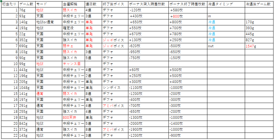皆さんが気になっているであろう冷遇は差枚数が+800枚になってから顕著に出てますね